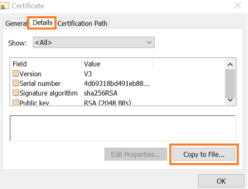 - Click Security, then View Certificate to see the certificates in the chain of trust.