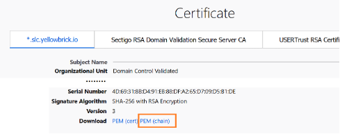 - Click the PEM (chain) link, which generates the certificate bundle for the entire chain of trust.