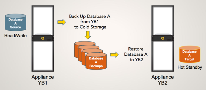 The backup and restore feature primarily supports disaster recovery (DR) scenarios: cases where a Yellowbrick system is irreparably damaged or lost, or a specific database on a system is compromised. You can resolve these problems by restoring databases from cold storage to the same cluster or a dedicated DR system. To keep a DR system in sync with minimal overhead, you can use incremental restore operations, which apply changes to databases after they have been fully restored.