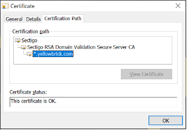 - *.yellowbrick.com: Leaf certificate, a wildcard certificate that applies to any host in the domain