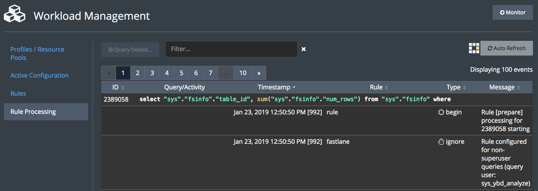 ...- Monitor WLM activity in the SMC. Use the Manage > Workloads > Rule Processing feature to see which rules and pools were processed for the query.