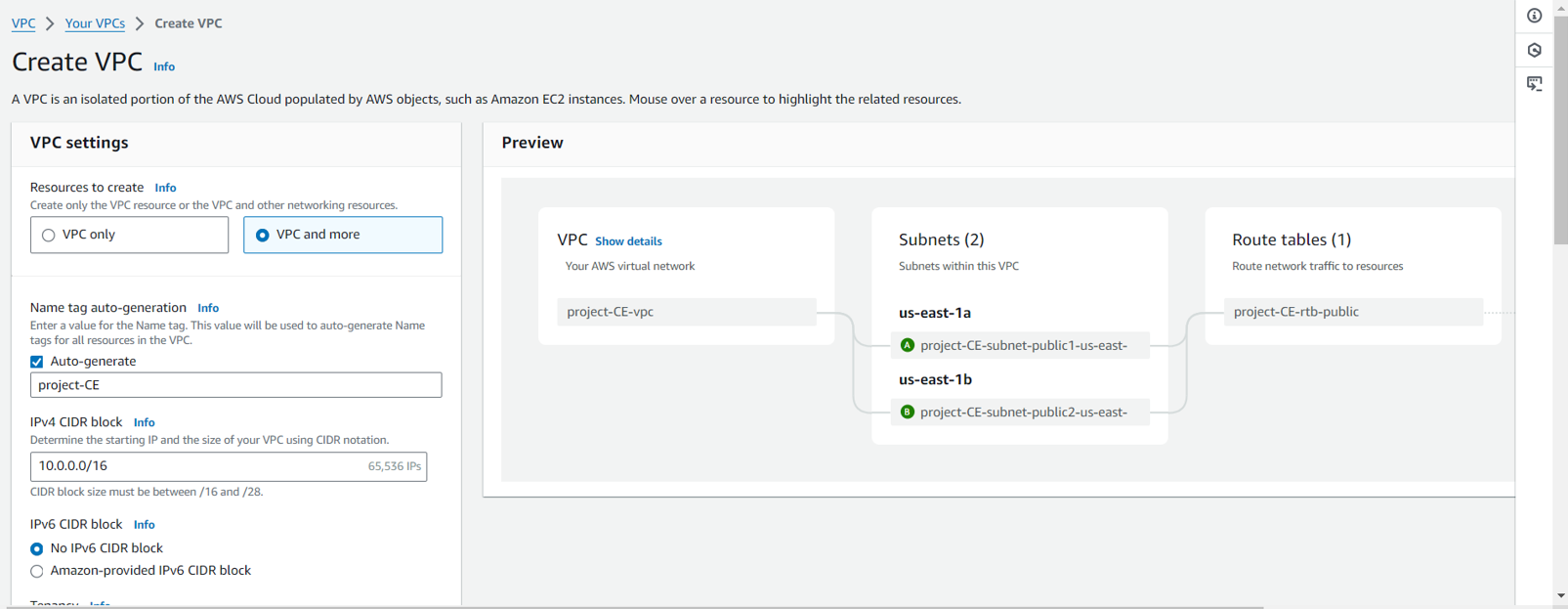 Name Tag: Enter a name for your VPC (For example, project-CE), so you can easily identify the VPC/Subnet while installing the product.