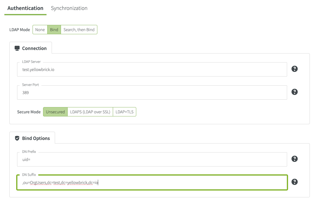 uid=analyst1,ou=OrgUsers,dc=test,dc=yellowbrick,dc=ioActive Directory (AD) Example with a Distinguished Name