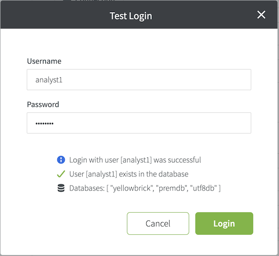 analyst1@test.yellowbrick.ioThe LDAP test login will succeed, and if analyst1 exists in the database, the login will return no warnings: