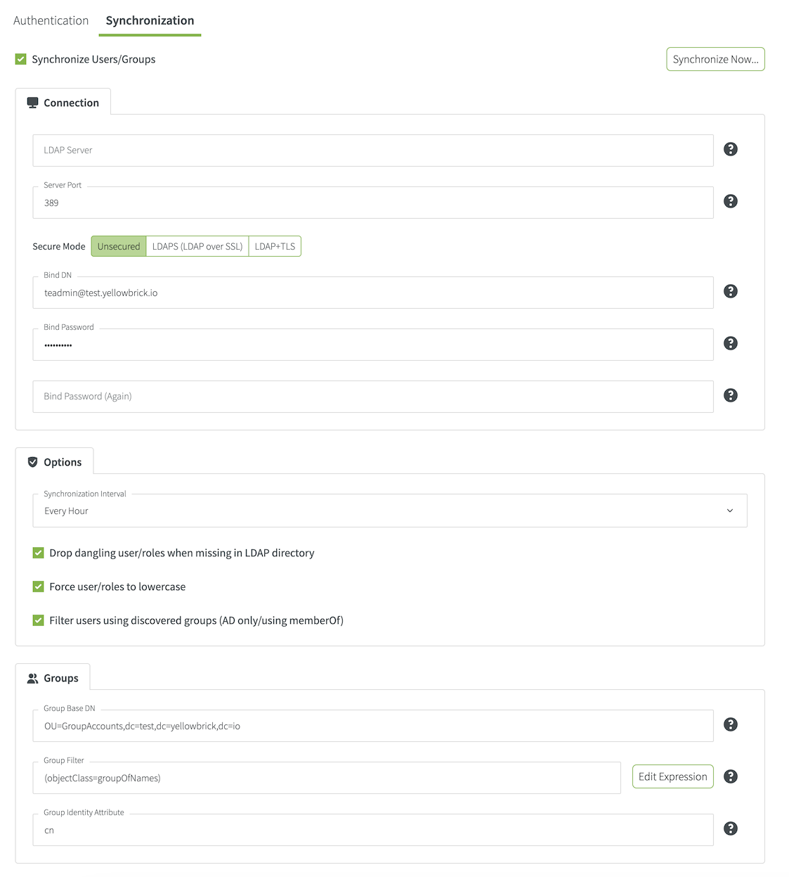 LDAP Synchronization Settings