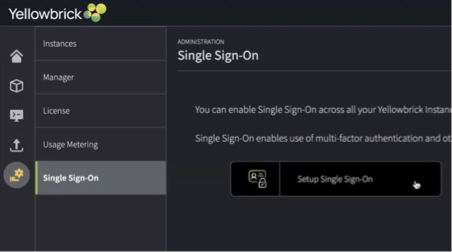 In order to set up an external IDP, use Yellowbrick Manager. Open Yellowbrick Manager, and navigate to the Single Sign-On page as shown in this screen shot: