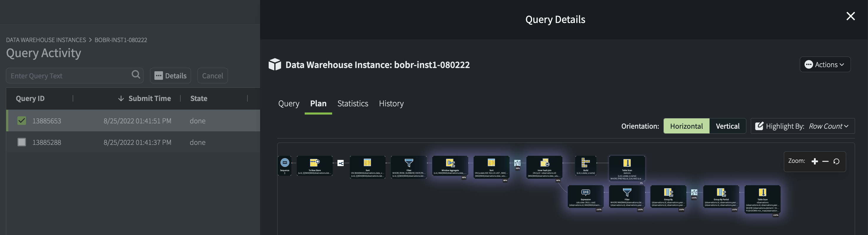 Tip: You may also want to use the visual EXPLAIN feature. In Yellowbrick Manager, go to Query Activity > Details > Plan. For example: